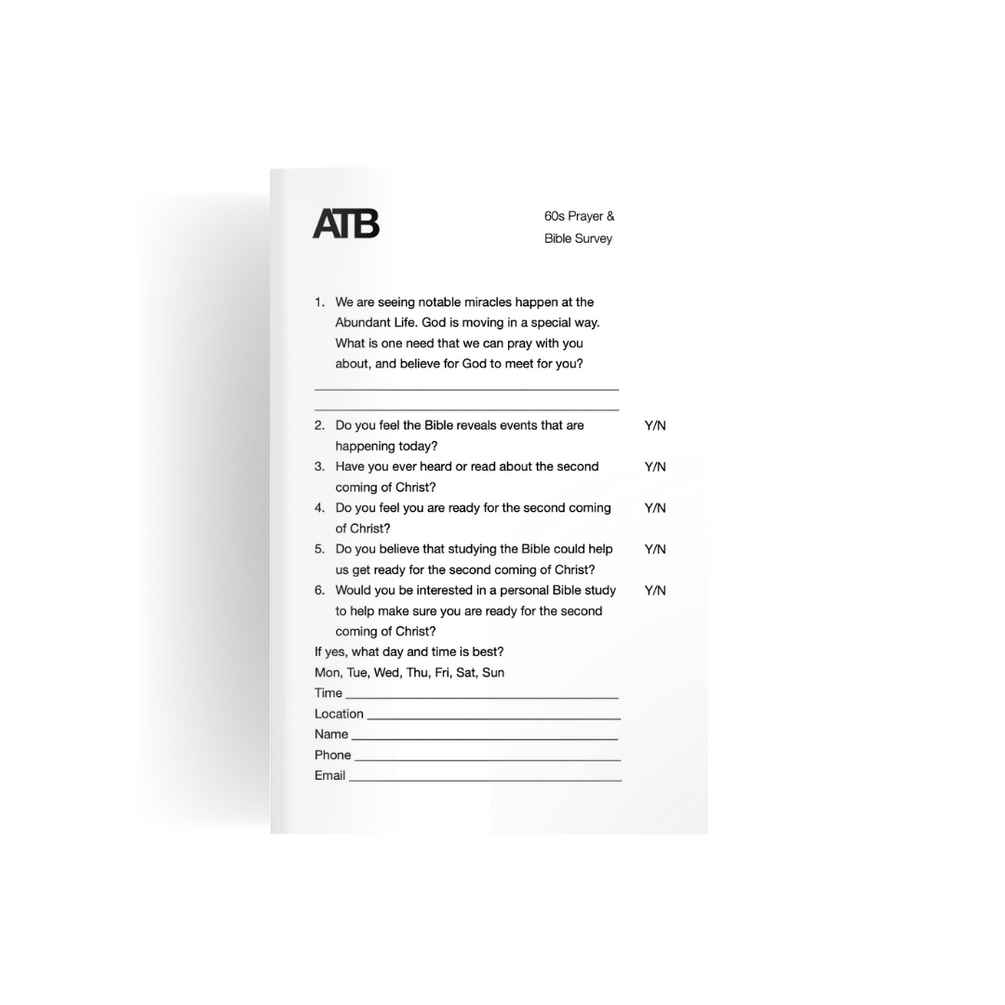 - The Survey does not contain the ATB logo. You can edit the pages doc and add your local church info and graphics.